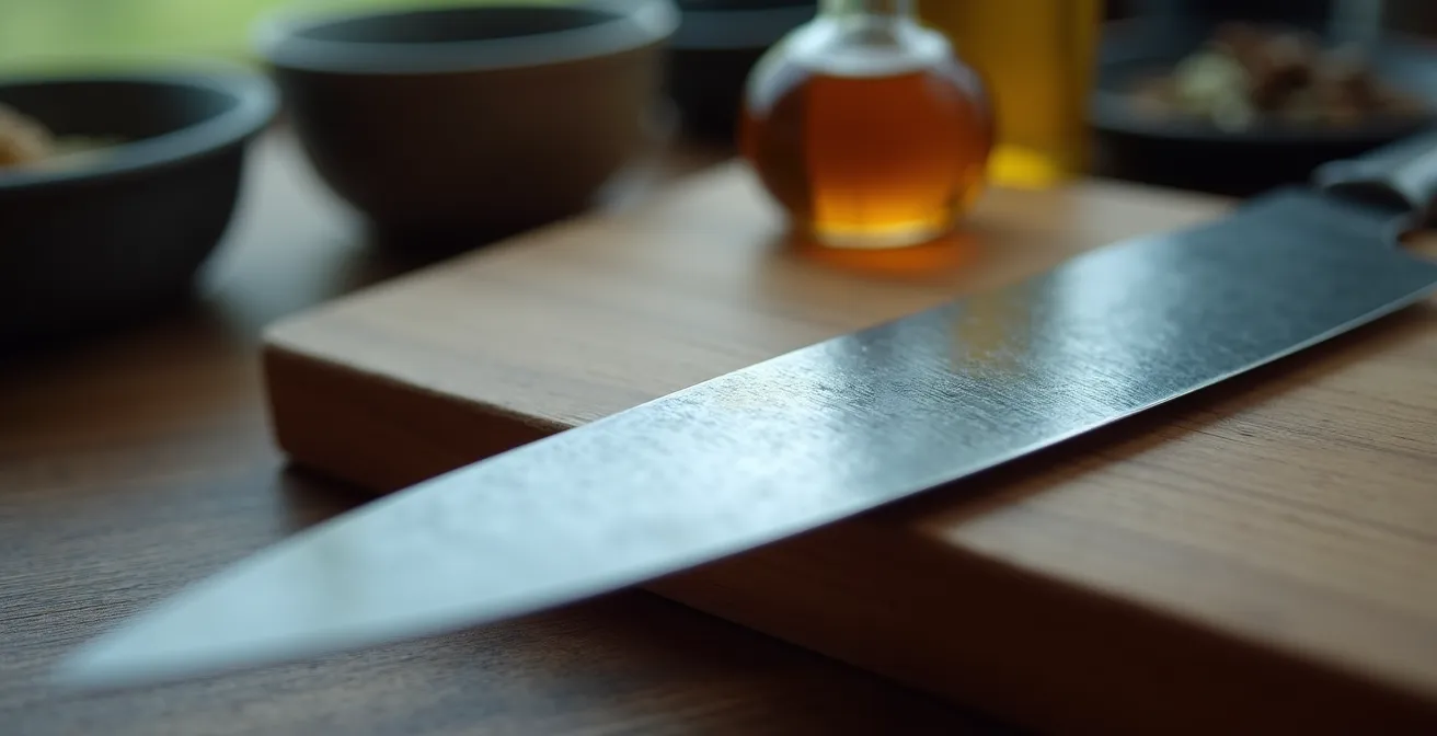 But what if the dark stains that appear after cutting an onion or a lemon weren’t damage, but the beginning of a protective shield? What if you could distinguish, with confidence, the “good” rust from the “bad”? This guide will move beyond the simple platitudes. We will explore the metallurgy of your blade, deciphering the chemical dialogue it has with food and moisture. You will learn to foster a stable, beautiful patina, master the sharpening process that its unique geometry demands, and set up your workspace to make proper care an effortless habit.