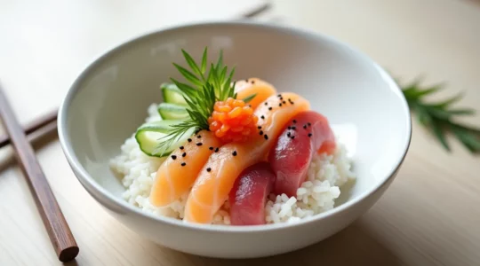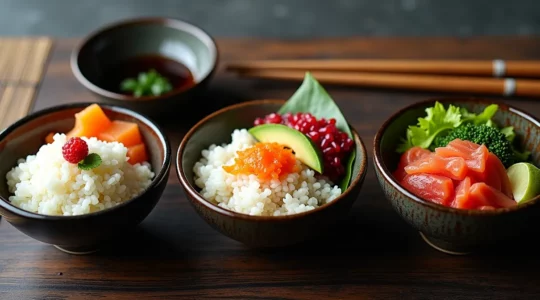 Preventing soggy rice requires avoiding excess moisture from toppings. Pat fish dry before arranging, ensure cooked components aren’t dripping with sauce, and consider a subtle barrier like shredded daikon radish or shiso leaves between particularly wet toppings and rice. Matching vinegar intensity to topping richness—using slightly more seasoning for assertive flavors, less for delicate fish—creates balance. These bowl styles also excel at utilizing leftover rice and odd pieces of fish that aren’t perfect enough for nigiri, transforming what might seem like scraps into a luxury presentation through thoughtful arrangement and fresh garnishes.